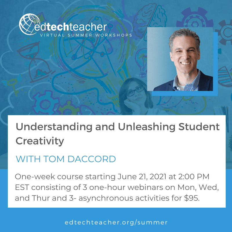If you are interested in exploring student creativity in greater detail with Tom, consider joining him for a 1 week virtual summer workshop. Learn more about the workshop & all of our virtual summer workshop sessions.