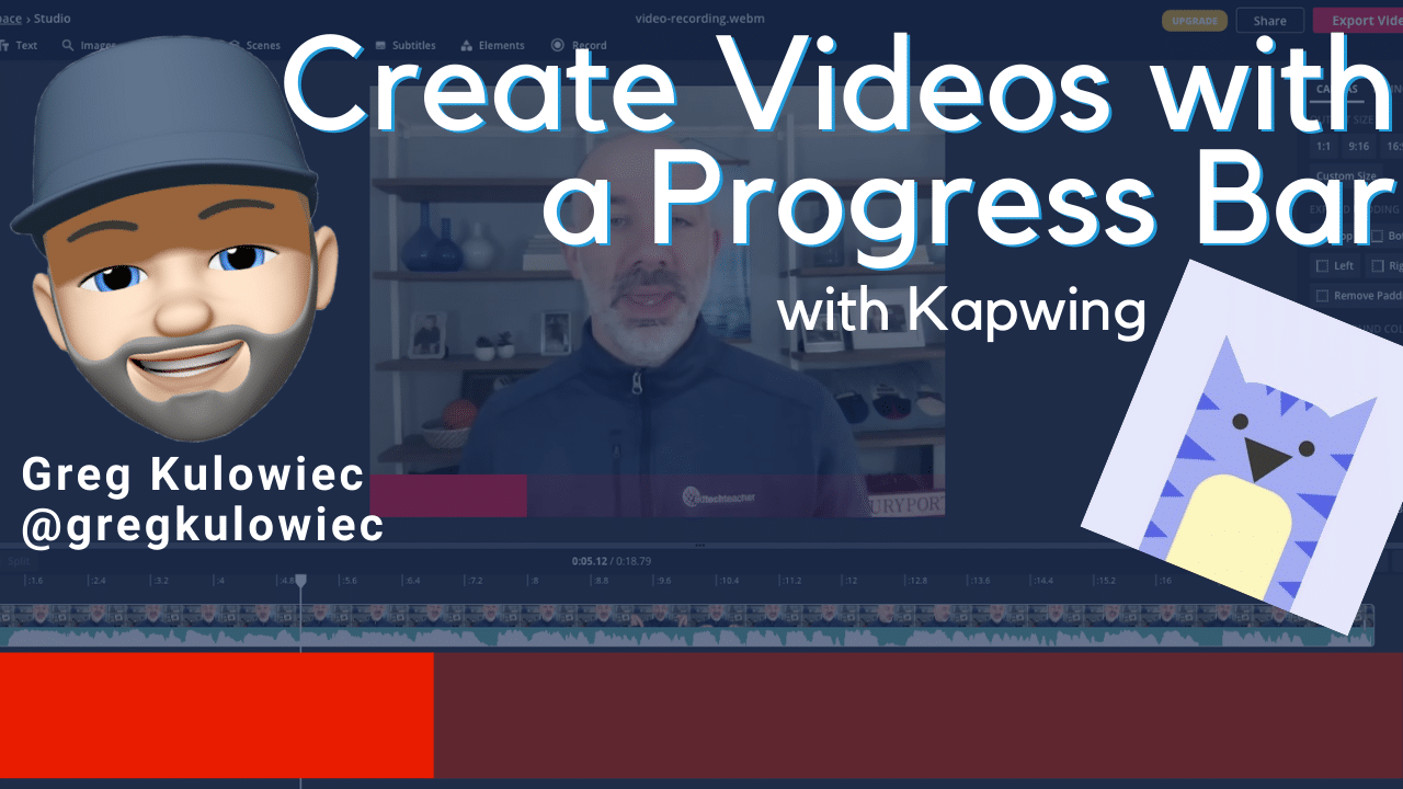 You may have seen these types of videos on various social media platforms. When I come across this sort of content, I find myself stopping to watch. It is through the visual cue of the progress bar, that I realize what I am getting involved with in terms of duration and time commitment. This same technique can be used when creating instructional videos for students in an educational setting. Kapwing, a free and exceptionally intuitive web based creation tool and video editor, allows you to upload an existing video clip, or create one from scratch (front-facing webcam video or a screen recording). Once the video is in the Kapwing editor, simple select the progress bar element and the editor will automatically create one across the bottom of the video. It will run throughout the duration of the video. Check out the entire creation process in the video walk-through below!
