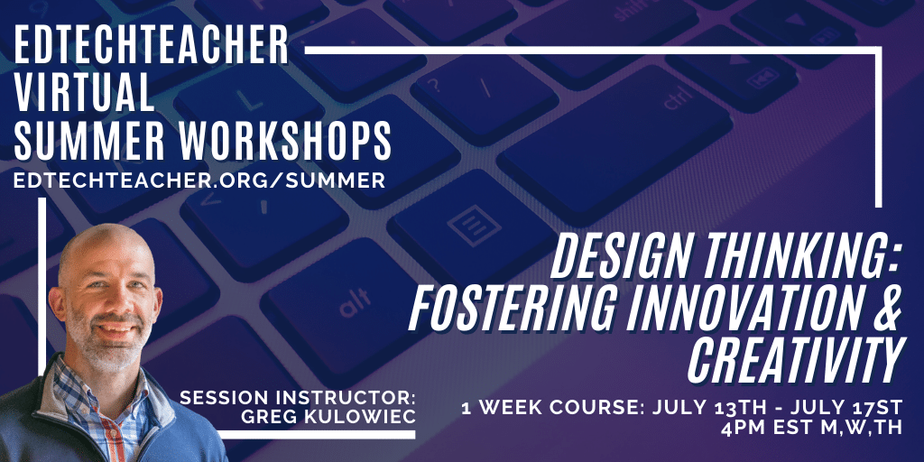 To take a deeper dive into design thinking as a powerful framework for fostering creativity and innovation in both physical and virtual learning environments, check out Greg's upcoming virtual workshop Design Thinking: Fostering Innovation and Creativity, running the week of July 13.