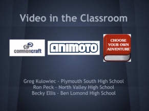 At the annual National Council for the Social Studies (NCSS) conference this fall, Greg Kulowiec presented with three colleagues on the topic of Video in the Classroom. Edutopia regularly features great examples of Project-Based Learning and Comprehensive Assessment, and the presentation that Greg and his colleagues delivered addresses both of those themes. In the article, Lights, Camera . . . Engagement! Three Great Tools for Classroom Video, Ron Peck presents the slides from NCSS as well as simple directions and classroom examples that leverage Animoto, Common Craft style, and Choose Your Own Adventure videos. Their Google Presentation is embedded below.